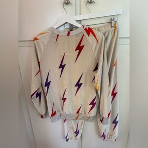 Gorgeous and rare! Washed once but NEVER WORN! Noticed a couple of tiny tiny marks on the front of the sweatshirt. Barely noticeable. Selling as a set but let me know if you are interested in only one piece.
