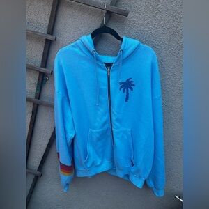 Aviator Palm Tree Festival Zip Up Hoodie In Blue