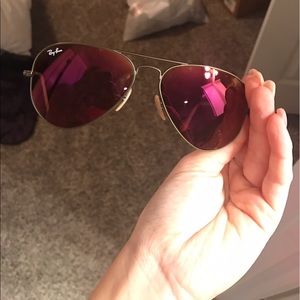 Pretty pinky/organge/Maroon mirror lens. Has som minor scratches but can't tell when worn! Will come with case. Make me an offer :) authentic.