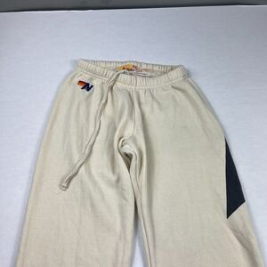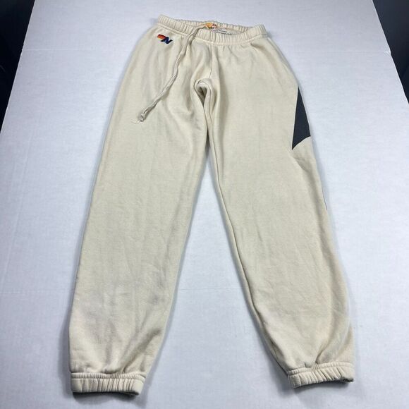 Aviator Nation Cream Logo Graphic Jogger Sweatpants Lounge Streetwear XS FLAW