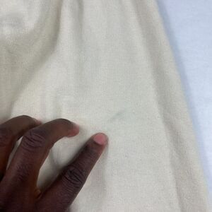 Cozy Aviator Nation joggers in cream with logo graphic and elastic cuffs.Fit/Feel: Soft fleece interior, relaxed and comfortable fit.Condition: Good — faint mark on hem and leg.