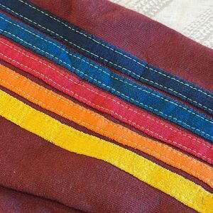 Aviator Nation Women’s Maroon Joggers with Colored Embroidered Side Stripes - XS. Comfortable maroon track pants featuring vibrant stripes. No pockets. Inside drawstring. Gently worn. Inseam 26”.