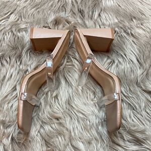 Avidirk Square Open Toe Backless Block Heeled Sandal- Double Clear Strap Slip On