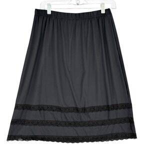 Avidlove Black Lace Trim Midi Skirt Elastic Waist L Womens Lined