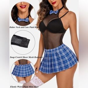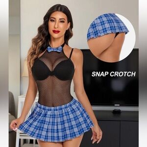 Avidlove School Girl Snap Crotch Bodysuit Plaid Mini Skirt