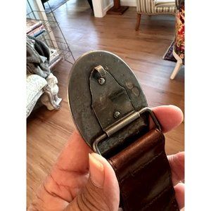 Avignon Designer Brown Leather Belt Silver Belt Buckle Rock Mosaic Design / Cowb