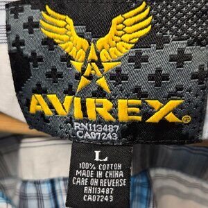 Avirex Button Up Shirt Men's Blue Plaid Military Inspired Pocket Spell Out L