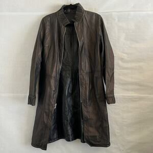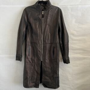 Avirpelle Italy Leather Coat 42 M Brown Black Reversible Zip Trench Jacket 90s