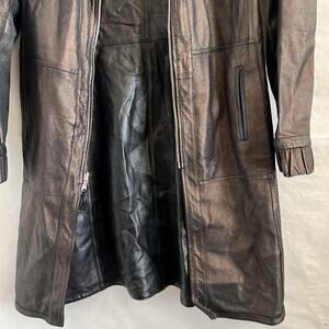 cyber, cyberpunk, sleek, dark feminine, 90s, y2k, grunge, matrix, maximalist, punk, rock, moto, bike, high fashion, glam, versatile, quality, luxurious, quiet luxury, elevated basic, statement, fall, winter, overcoat, long leather jacket, leather trench coat, vintage leather coat, Italian leather jacket, reversible trench, 90s minimalist, grunge leather coat, goth fashion, moto chic, Avirpelle Italy, women’s M leather coat