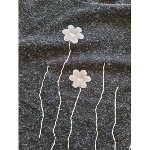 Women's Raglan Long Sleeve Heathered Gray Pullover sweater with Applique Flowers Size Small, Polyester Blend