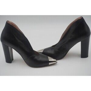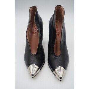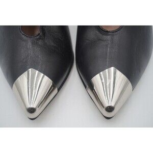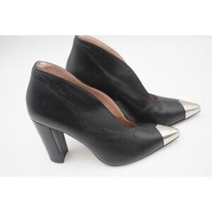 Avitto Leather Metallic Toe Cap Vamp Cut Pointed Toe Black Ankle Block Heel 38