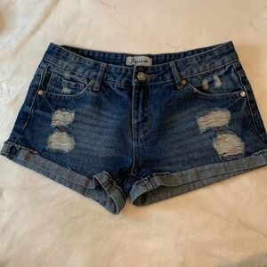Aviva Distressed Denim Cuffed Shorts. EUC. Size 7. Zipper and button closure.