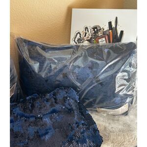 Color is a deep royal blue with sequence on one side and soft luxury on the other.