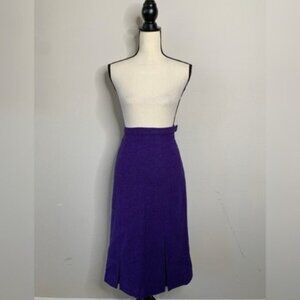 Avoca Collection Purple Wool Vintage High Waist Midi A-Line Pleated Skirt