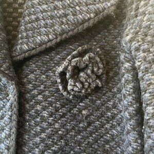 Avoca women's coat, size 2. Gorgeous blue nubby tweed-like fabric. Feminine, lady-like silhouette and style. Large collar. Vintage look. Hidden snap closures up front. Pockets and floral detail on front. From the Avoca Mill in Wicklow, Ireland. 70% wool. Made in Ireland. Dry clean.