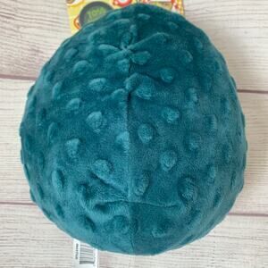 Avocado shaped dog toy with squeaker. This plush puppy toy is great for tossing and fetching. It has an embroidered face. The back of the avocado has a raised polka dot texture. The pit is NOT removable. It is NEW with tags.