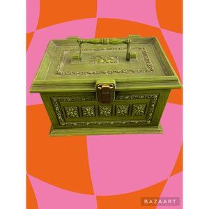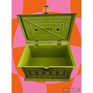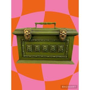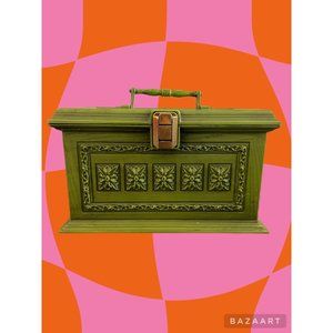 Avocado Green 1970's VTG Green Sewing Storage Chest Faux Wood Look