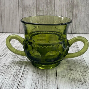 Kings Crown Thumbprint Green Glass Creamer And Sugar Bowl set