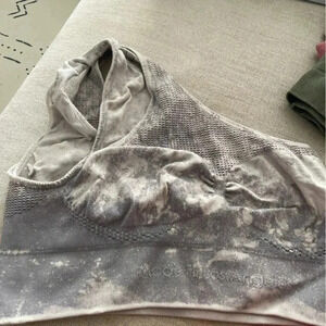 Super soft, sustainable one-shoulder sports bra ready for a new home. Perfect for low impact activity (walking, yoga, Pilates). Made in Los Angeles. Slightly marble in color.