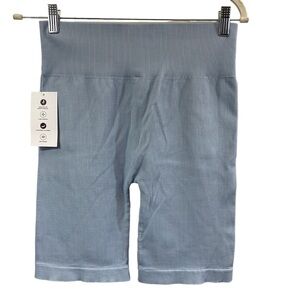 Avocado Seamless High Rise Ribbed Bike Shorts Blue Stretch Nylon Spandex Sz M/L