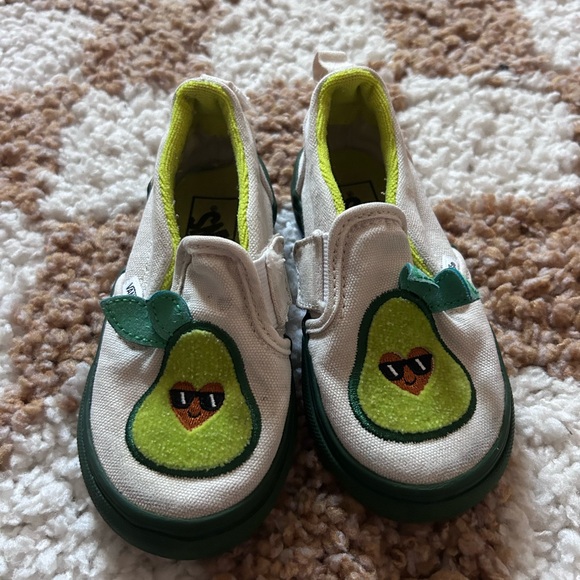 Fun and playful kids shoes featuring a cute avocado design. Perfect for adding a splash of color to any outfit. Comfortable and stylish for everyday wear.