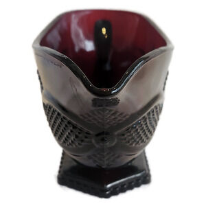 Avon 1876 Cape Cod Ruby Red Gravy Boat / Creamer. Made of deep ruby red pressed glass with the signature Cape Cod diamond-point and thumbprint pattern, this piece was produced by Avon in the mid-1970s to early 1990s.