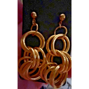 These vintage Avon earrings from the 1970s add a touch of elegance and retro-inspired fun to any outfit. The gold ring design with a dangling style is perfect for those who love a bit of movement and whimsy in their jewelry. The earrings are in excellent condition and will be a great addition to any jewelry collection.