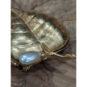 Avon 1972 Golden Leaf Solid Compact Pin Brooch with Faux Pearl Berry