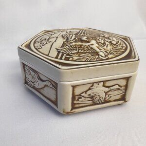 Avon 1980 Ceramic Trinket Box Handcrafted in Brazil Duck Relief Nature Scene