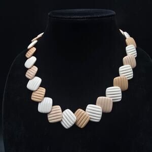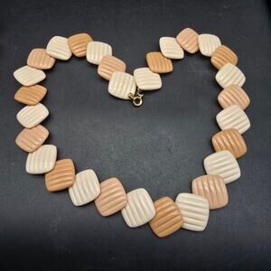 Avon 1985 Summer Sands Necklace Beige Cream Brown Plastic Square Beaded