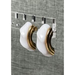 Avon 1988 Classic Twist White Plastic Gold Tone Post Earrings