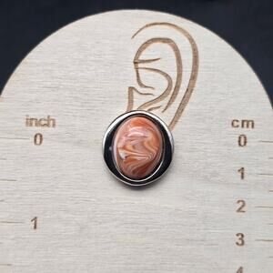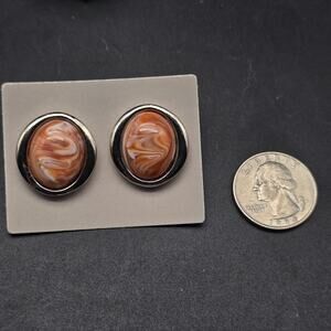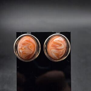 These vintage Avon 1988 Desert Sands earrings are for pierced ears and feature marbled peach acrylic and measure 1" x .8"