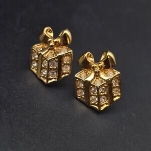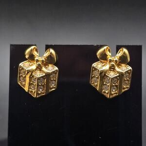 These vintage Avon 1992 Sparkling Package earrings are for pierced ears and feature .6" x .5" gold tone gift boxes with rhinestones