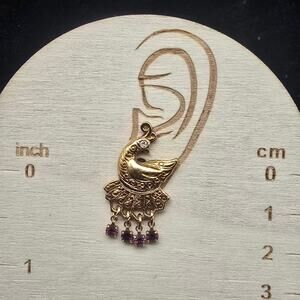Avon 1994 Peacock Dangle Earrings Gold Tone Purple Bead Bird Vintage
