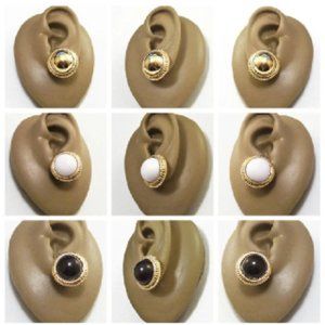 Avon Black White Gold Buttons Pierced Stud Earrings Gold Tone Vintage Three Pairs In One Magnetic Convertible Round Domed Beads Ribbed Edge