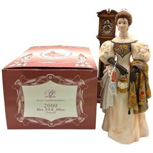 Avon 2000 Mrs Albee Award Porcelain Lady 10" Figurine and Plastic Grandfather Clock in Original Box with Styrofoam Packaging.