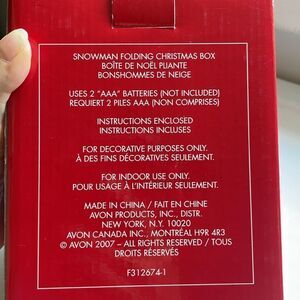 Avon 2007 Snowman Folding Christmas Box that plays “Deck The Halls” in original box