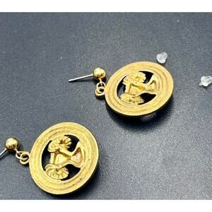 Avon Aries Ram Zodiac March Vintage Pierced Gold Tone Dangling Earrings