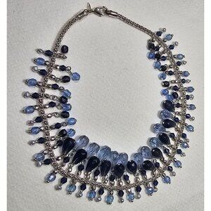 • Blue & dark blue bead fringe choker necklace by Avon (Silver Plated)
