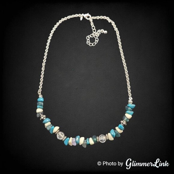 Avon Beaded Chain Faux Turquoise Chip Silver Tone Necklace