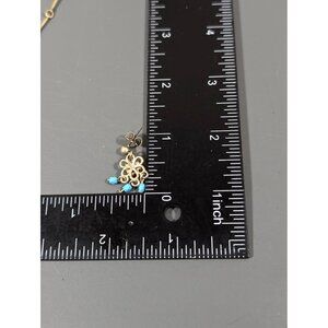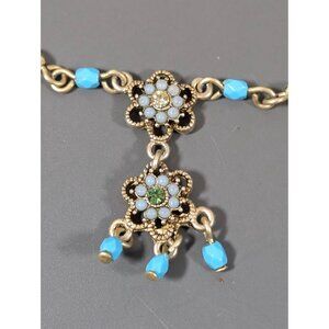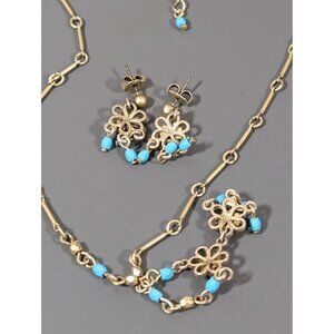 Avon Blue FLower Gold Tone Matte Fringe Charm Boho Western Necklace Earring Set