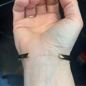 This elegant bracelet features a stunning blue stone set in a sleek gold design. Perfect for adding a touch of sophistication to any outfit.