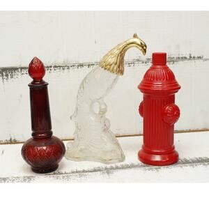 Avon Bottles Set of 3 Bird, Red Glass, Fire Hydrant EMPTY