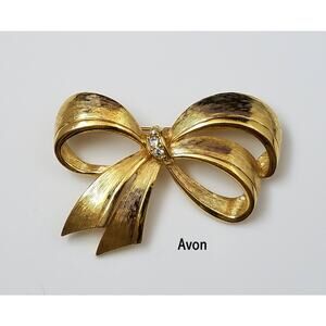 *Description: This is a beautiful Avon gold plated bow brooch with clear rhinestones on the center of the bow from the 1960s. This would be a great addition to your vintage jewelry collection or make a great vintage gift!
