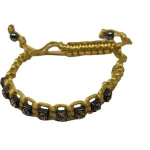 Avon Bracelet Yellow Braided Rhinestone BOHO Retro Adjustable Rodeo Wrap