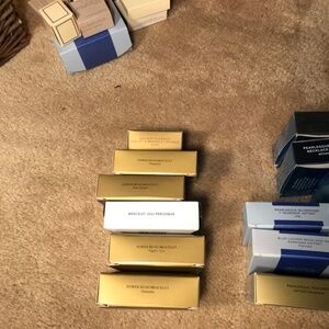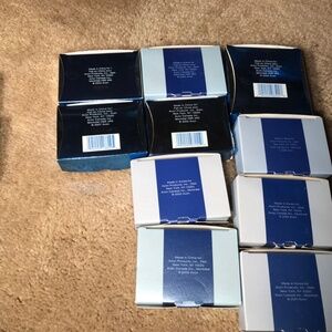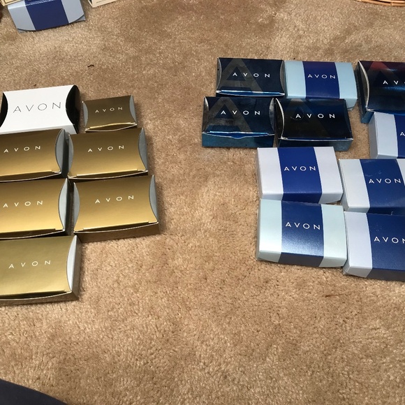 Avon Bracelet and Gift Set Bundle. 7 Bracelets. 10 Gift Sets. Blue boxes are between 2000 and 2005. Gold boxes 1999 and 2000. One white box 2011. My mother purchased these then kept them in a dresser drawer.
