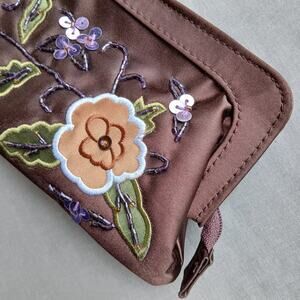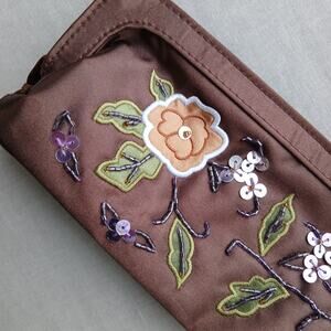 Avon Brown Satin Floral Beaded Clutch embroidered sequin evening bag vtg Y2K