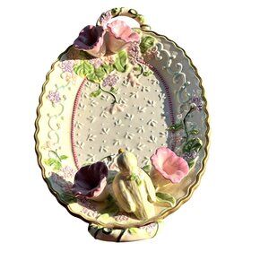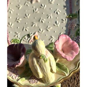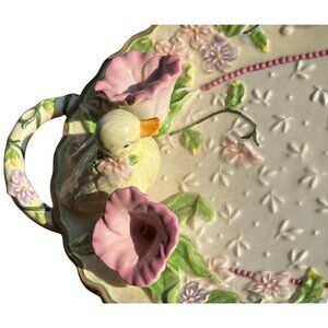 Avon Ceramic Spring Platter Embossed Pastel Pink Easter Floral Ducks 2001 Vtg