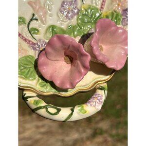This intricately designed vintage ceramic plaque features a charming Duck/Chick amidst delicate pink flowers. Hand-painted with precision, it's an elegant addition to home décor.