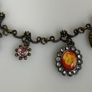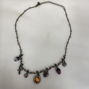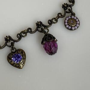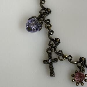 Avon Charm Necklace Victorian Style Bronze-tone Purple Pink Cross